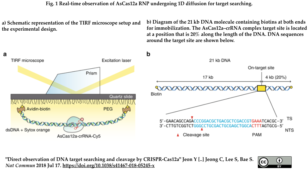 - [出典]"Direct observation of DNA target searching and cleavage by CRISPR-Cas12a" Jeon Y [..] Jeong C, Lee S, Bae S. Nat Commun 2018 Jul 17.