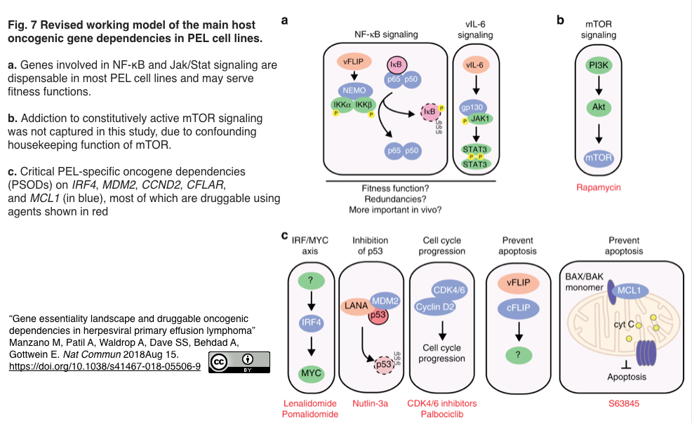 - [出典]"Gene essentiality landscape and druggable oncogenic dependencies in herpesviral primary effusion lymphoma" Manzano M [..] Gottwein E. Nat Commun. 2018 Aug 15.