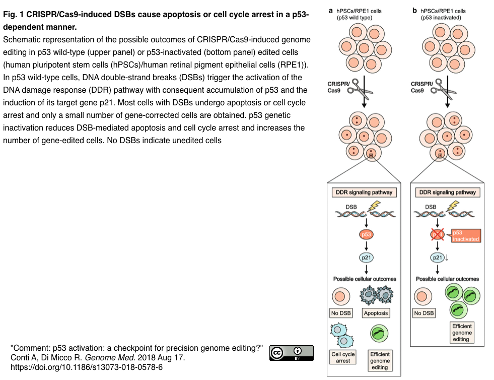 - [出典]"Comment: p53 activation: a checkpoint for precision genome editing?" Conti A, Di Micco R. Genome Med. 2018 Aug 17.