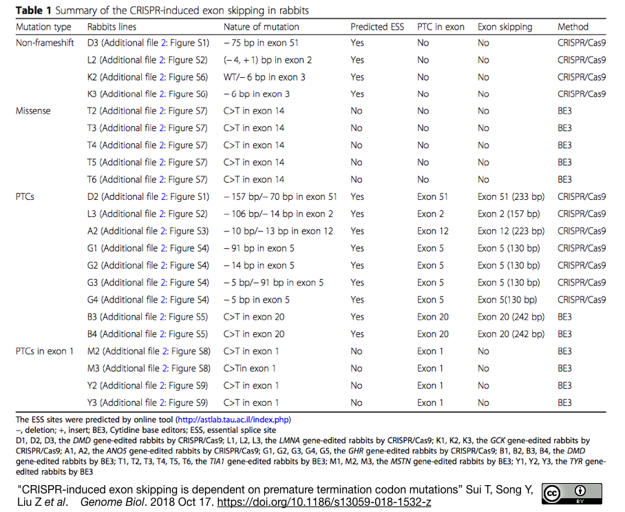 [出典] "CRISPR-induced exon skipping is dependent on premature termination codon mutations" Sui T, Song Y, Liu Z et al. Genome Biol. 2018 Oct 17.