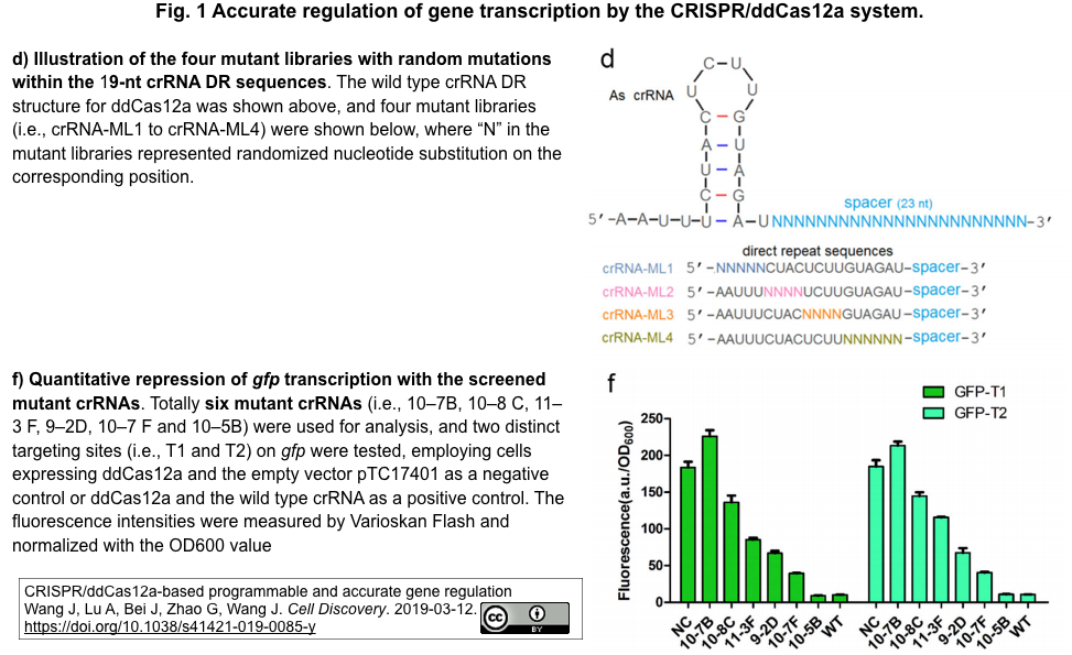 [出典] CORRESPONDENCE "CRISPR/ddCas12a-based programmable and accurate gene regulation" Wang J, Lu A, Bei J, Zhao G, Wang J. Cell Discovery. 2019-03-12.