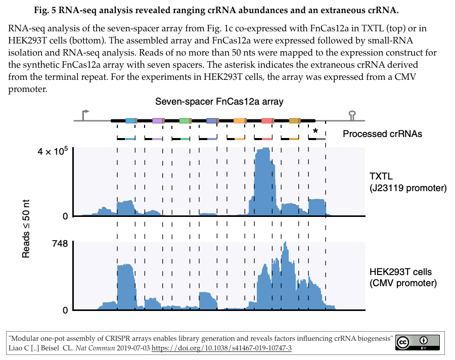 [出典] "Modular one-pot assembly of CRISPR arrays enables library generation and reveals factors influencing crRNA biogenesis" Liao C [..] Beisel CL. Nat Commun 2019-07-03 (bioRxiv 2018-05-02)