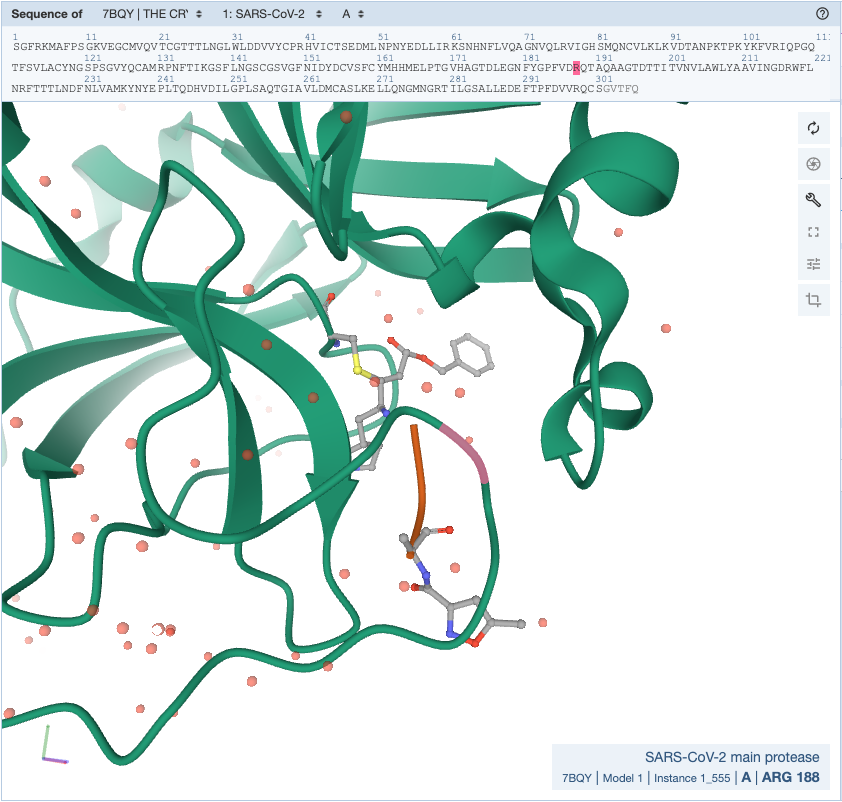 Structure of COVID-19 main protease bound to potent broad-spectrum non-covalent inhibitor X77 [A taxonomically-driven approach to development of potent, broad-spectrum inhibitors of coronavirus main protease including SARS-CoV-2 (COVID-19)] |