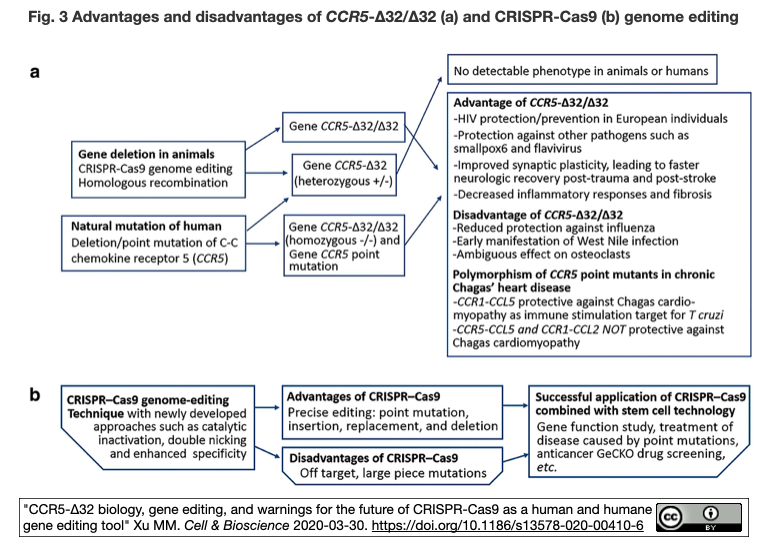 [出典] "CCR5-Δ32 biology, gene editing, and warnings for the future of CRISPR-Cas9 as a human and humane gene editing tool" Xu MM. Cell & Bioscience 2020-03-30.