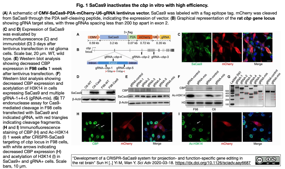 [出典] "Development of a CRISPR-SaCas9 system for projection- and function-specific gene editing in the rat brain" Sun H [..] Yi M, Wan Y. Sci Adv 2020-03-18.