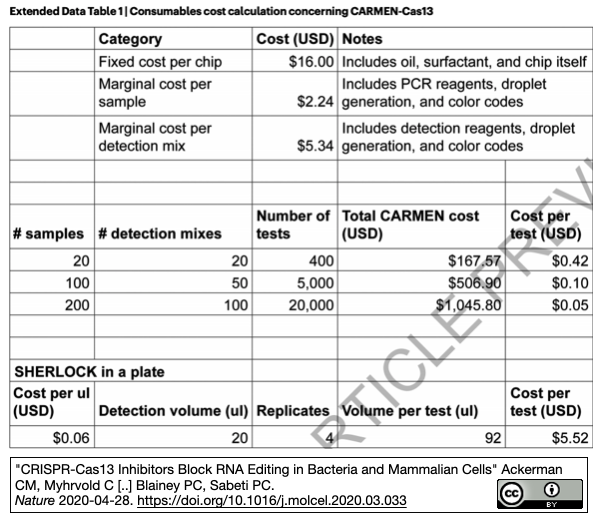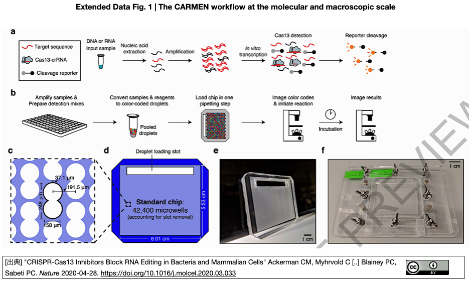 [出典] "Massively multiplexed nucleic acid detection using Cas13" Ackerman CM, Myhrvold C [..] Blainey PC, Sabeti PC. Nature 2020-04-28. (迅速公開版)