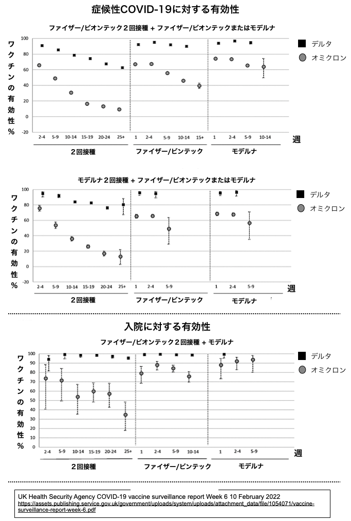 2022-09-15 デルタ株流行期・オミクロン株流行期における新型コロナワクチンの有効性評価 ( 日本のデータ):[出典] 国立感染症研究所研究情報 2022-08-04 https://www.niid.go.jp/niid/ja/basic-science/epidemi/11369-epi-2022-02.html; [論文] "COVID-19 vaccine effectiveness against symptomatic SARS-CoV-2 infection during Delta-dominant and Omicron-dominant periods in Japan: a multi-center prospective case-control study (Factors Associated with SARS-CoV-2 Infection and the Effectiveness of COVID-19 Vaccines Study) Takeshi Arashiro et al. Clinical Infectious Diseases 2022-08-03 https://doi.org/10.1093/cid/ciac635