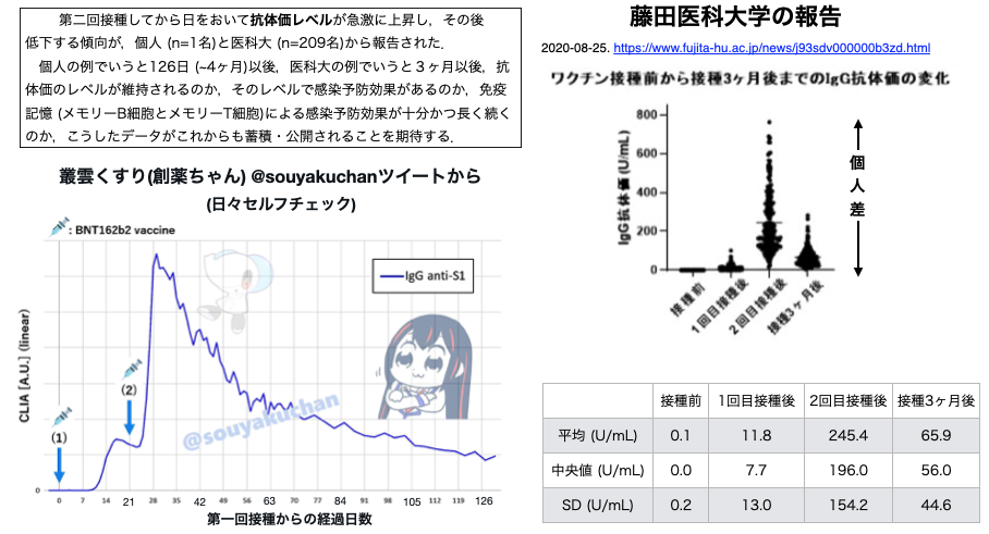 [出典] 第76回厚生科学審議会予防接種・ワクチン分科会副反応検 討部会、令和3年度第28回薬事・食品衛生審議会薬事分科 会医薬品等安全対策部会安全対策調査会(合同開催) 2022年2月18日 資料1-8 ファイザー社ワクチン初回接種者に対する 3回目接種後中間報告(3) https://www.mhlw.go.jp/content/10601000/000899481.pdf: 新型コロナワクチン追加接種(3回目接種)にかかわる免疫持続性および安全性調査(コホート[*]調査) 順天堂大学 コロナワクチン研究事務局作成提供資料.p. 34「まとめ」