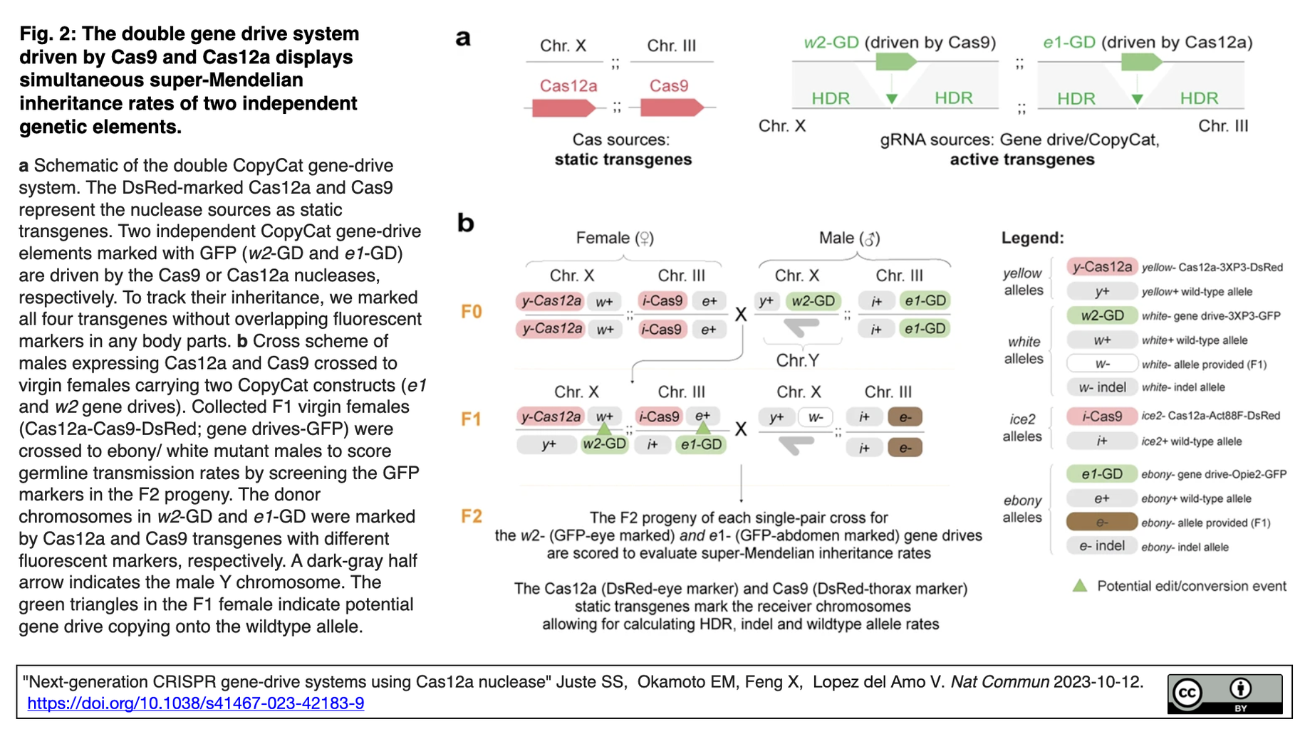 [出典] "Next-generation CRISPR gene-drive systems using Cas12a nuclease" Juste SS, Okamoto EM, Feng X, Lopez del Amo V. bioRxiv 2023-02-20 [preprint]. Nat Commun 2023-10-12. https://doi.org/10.1038/s41467-023-42183-9 [著者所属] UT Health Science Center, UCSD.