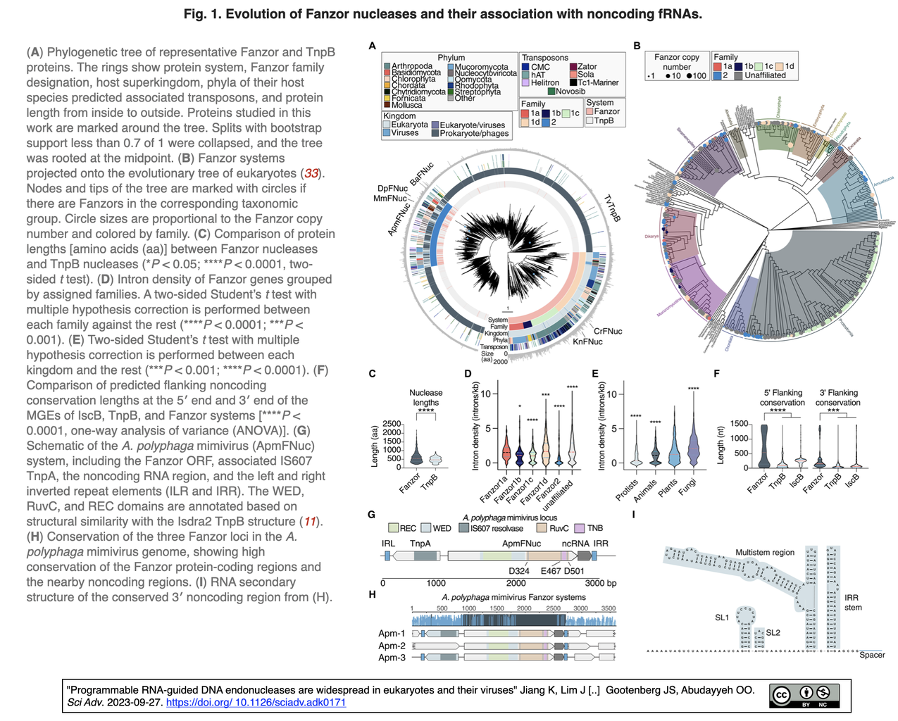 [出典] "Programmable RNA-guided endonucleases are widespread in eukaryotes and their viruses" Jiang K, Lim J [..] Abudayyeh OO, Gootenberg JS. bioRxiv 2023-06-14 [preprint] [著者所属] McGovern Institute for Brain Research at MIT, MIT, NCBI[背景]