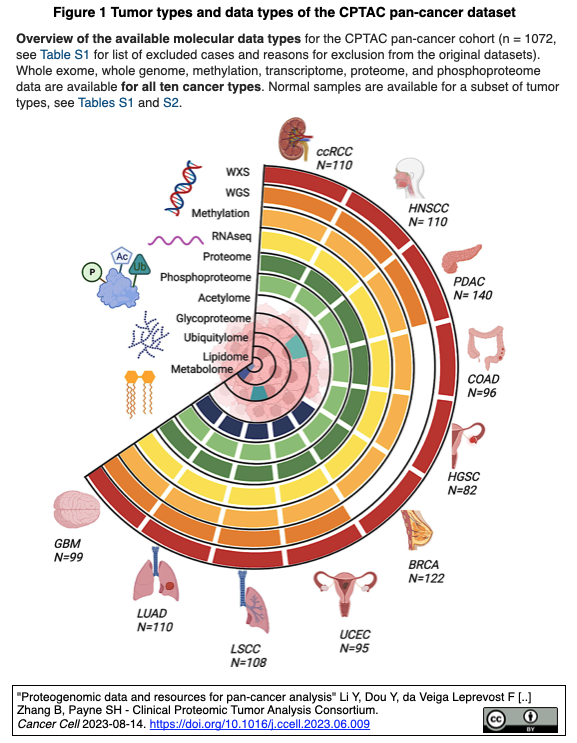- 論文 "Proteogenomic data and resources for pan-cancer analysis" Li Y, Dou Y, da Veiga Leprevost F [..] Zhang B, Payne SH・Clinical Proteomic Tumor Analysis Consortium. Cancer Cell 2023-08-14. https://doi.org/10.1016/j.ccell.2023.06.009
