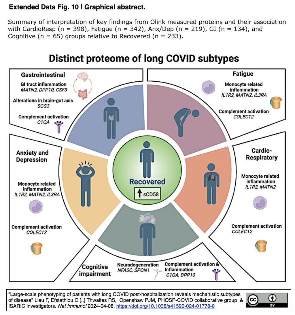論文 "Large-scale phenotyping of patients with long COVID post-hospitalization reveals mechanistic subtypes of disease" Lieu F, Efstathiou C [..] Thwaites RS, Openshaw PJM, PHOSP-COVID collaborative group & ISARIC investigators. Nat Immunol 2024-04-08. https://doi.org/10.1038/s41590-024-01778-0 [所属] 英国の395機関に数ヵ国の機関および2つの国際コンソーシムが加わったグループ