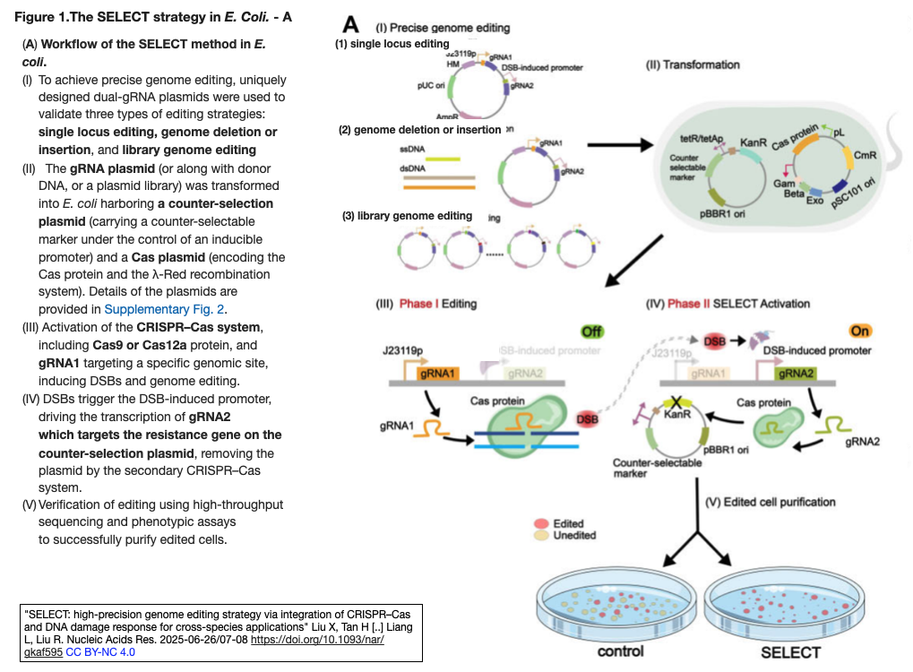 [Figure 1 A 引用右図参照][出典] "SELECT: high-precision genome editing strategy via integration of CRISPR–Cas and DNA damage response for cross-species applications" Liu X, Tan H [..] Liang L, Liu R. Nucleic Acids Res. 2025-06-26/07-08 https://doi.org/10.1093/nar/gkaf595 [著者所属] Dalian U Technology