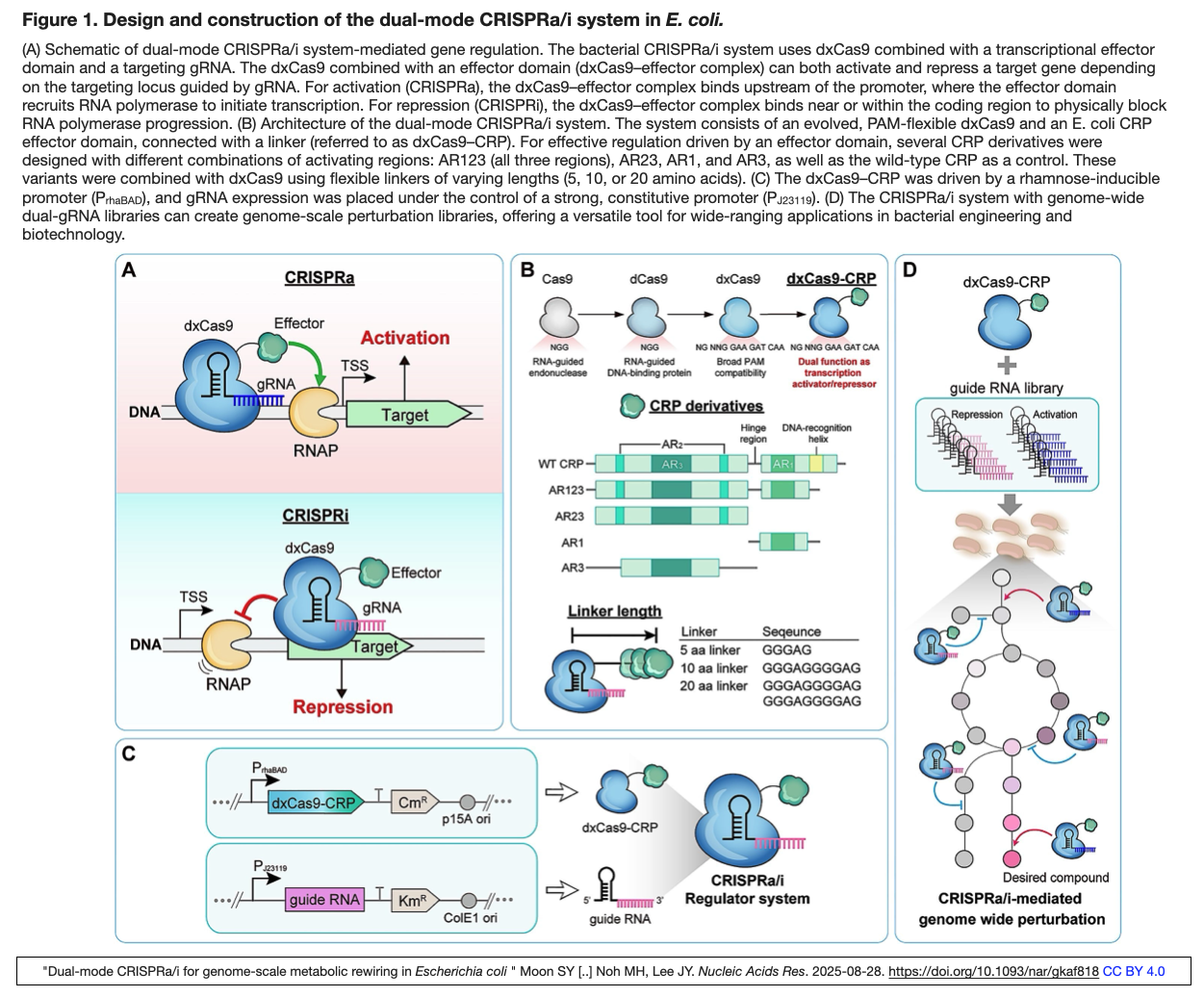 - 論文 "Dual-mode CRISPRa/i for genome-scale metabolic rewiring in Escherichia coli " Moon SY [..] Noh MH, Lee JY. Nucleic Acids Res. 2025-08-28. https://doi.org/10.1093/nar/gkaf818 [所属] Korea Advanced Institute of Science and Technolog (KAIST), Pohang University of Science and Technology (POSTECH), Korea Research Institute of Chemical Technology (KRICT)