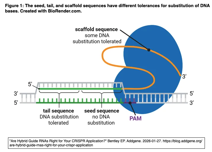 - "Are Hybrid Guide RNAs Right for Your CRISPR Application?" Bentley EP. Addgene. 2026-01-27. https://blog.addgene.org/are-hybrid-guide-rnas-right-for-your-crispr-application