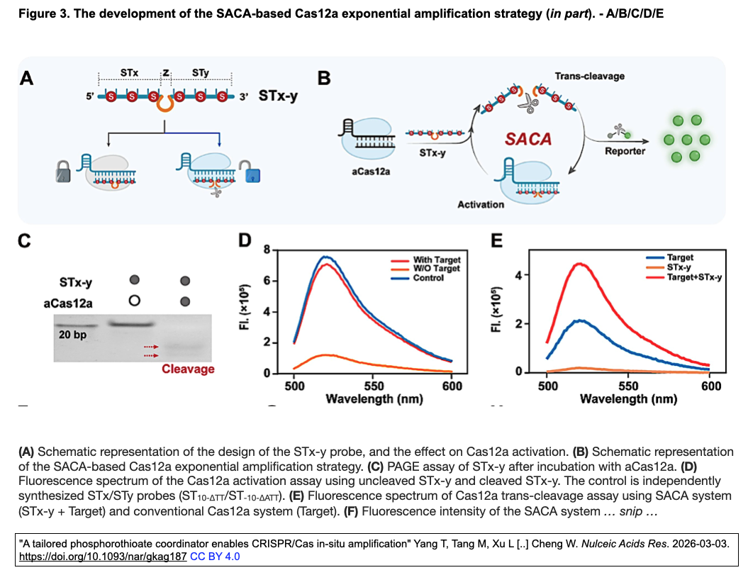 - "A tailored phosphorothioate coordinator enables CRISPR/Cas in-situ amplification" Yang T, Tang M, Xu L [..] Cheng W. Nulceic Acids Res. 2026-03-03. https://doi.org/10.1093/nar/gkag187 [所属] The First Affiliated Hospital of Chongqing Medical University (The Center for Clinical Molecular Medical Detection; The Biobank Center), Zhejiang University (Institute of Bioengineering), ZJU-Hangzhou Global Scientific and Technological Innovation Center, Zybio Inc.