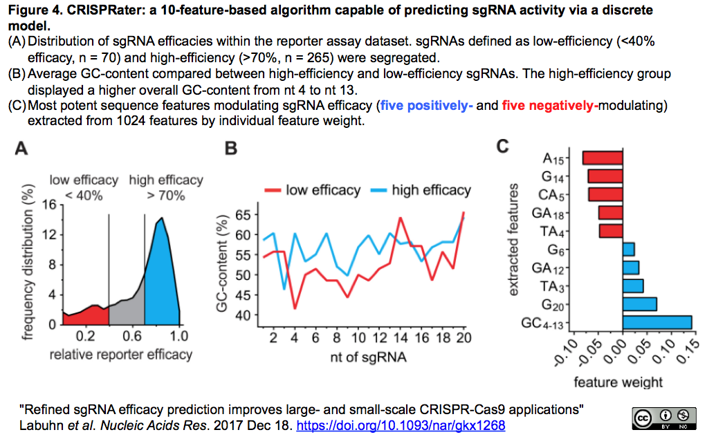 [出典]"Refined sgRNA efficacy prediction improves large- and small-scale CRISPR-Cas9 applications" Labuhn M, Adams FF, Ng M, Knoess S, Schambach A, Charpentier EM, Schwarzer A, Mateo JL, Klusmann JH, Heckl D. Nucleic Acids Res. 2017 Dec 18.