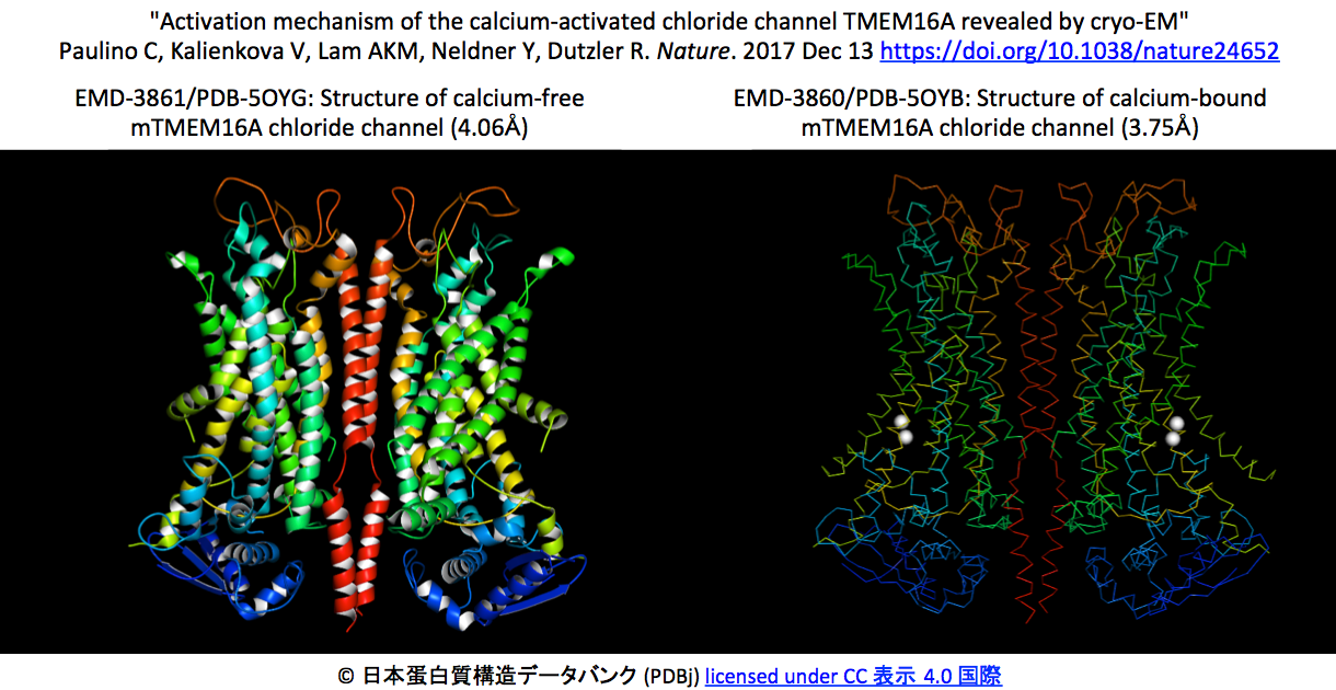 [出典4]"Activation mechanism of the calcium-activated chloride channel TMEM16A revealed by cryo-EM" Paulino C, Kalienkova V, Lam AKM, Neldner Y, Dutzler R. Nature. 2017 Dec 13.